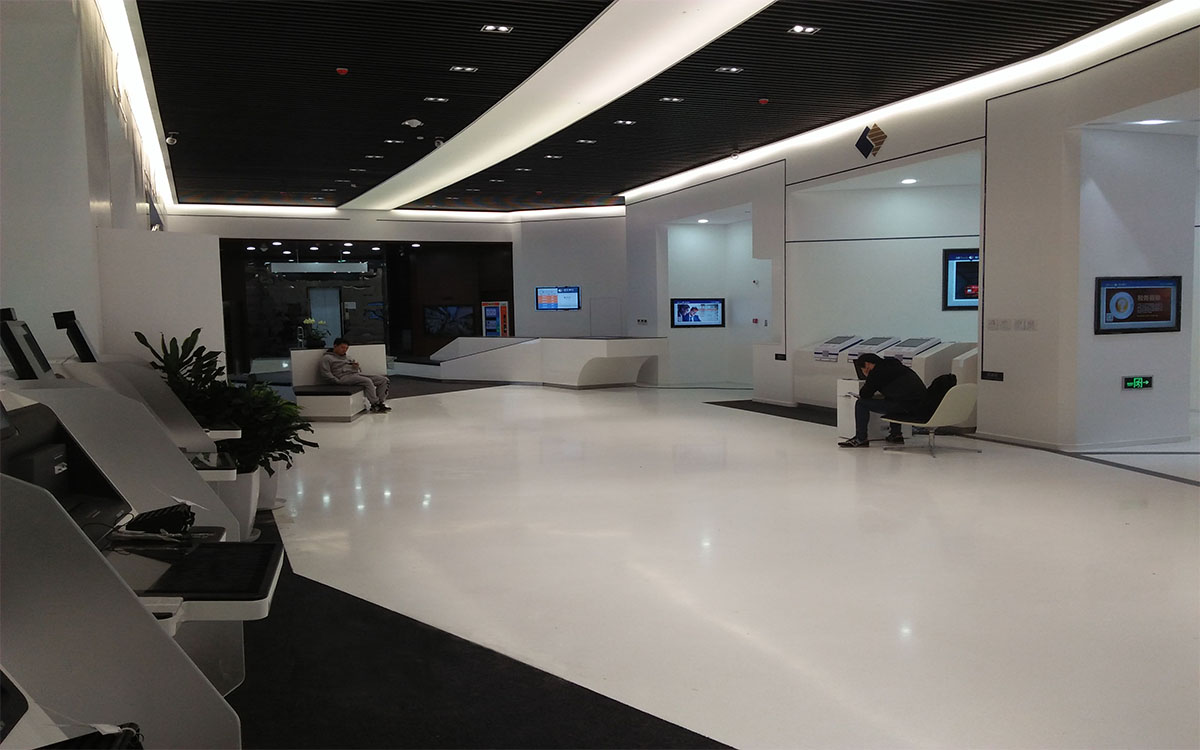 由線條分隔出的圖形猶如恒豐銀行的LOGO,在地面、墻面、頂面隨處可見。