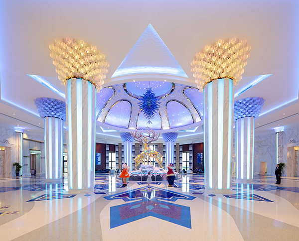 As the highlight of the hotel, the lobby is mainly blue with colorful snowflake patterns on the ground Give the resident extraordinary vision